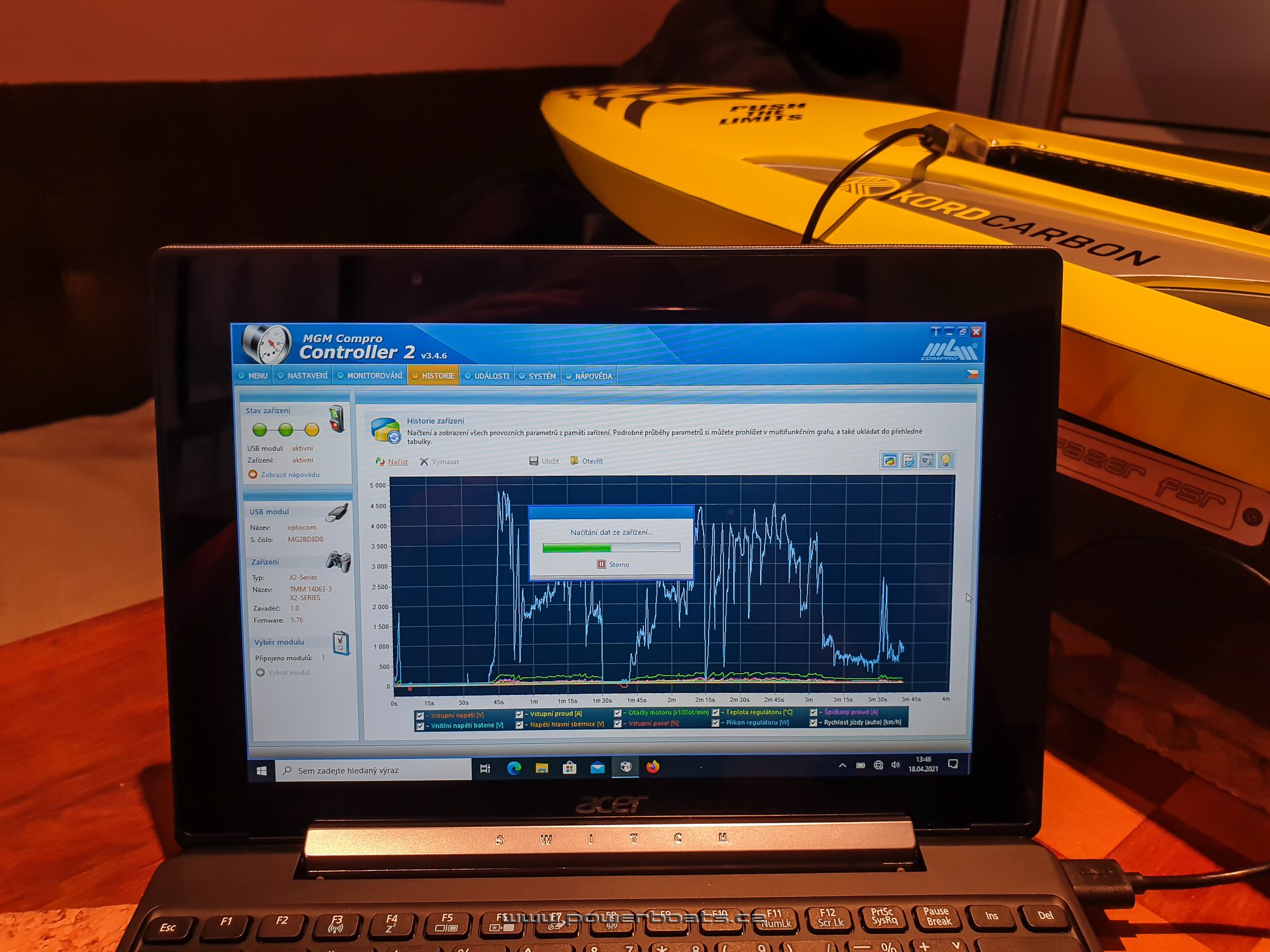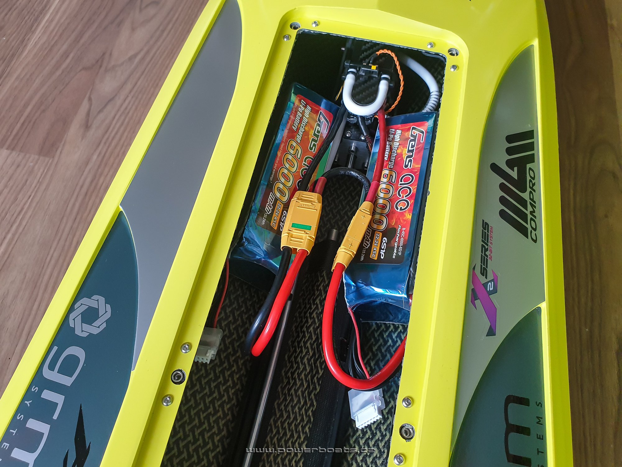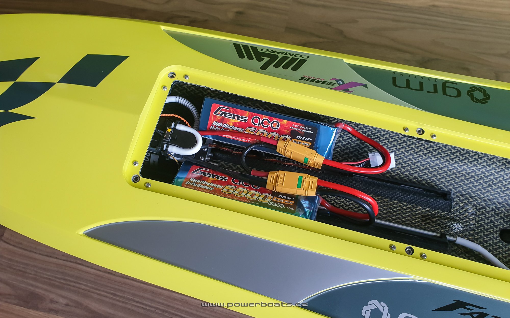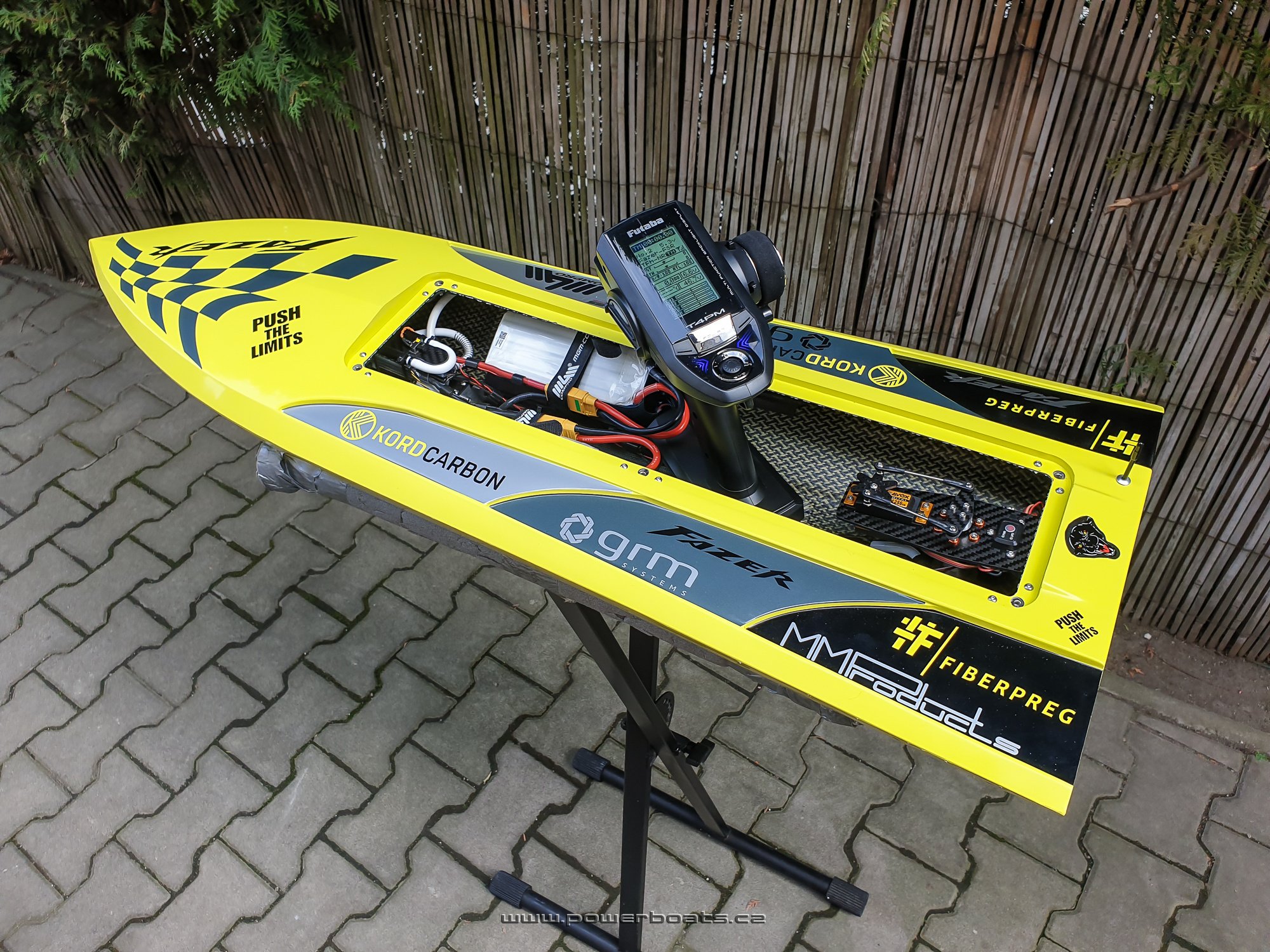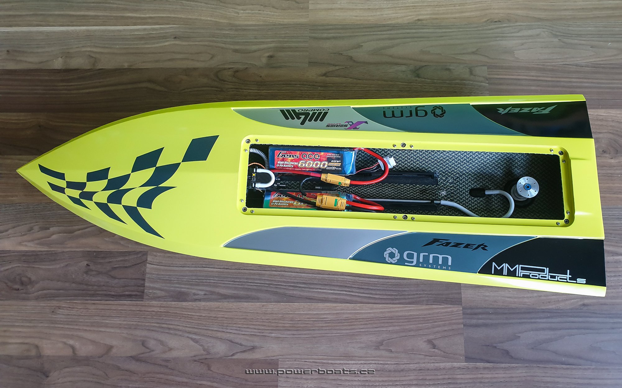 Kamarádům se má dělat radost a myslím, že i v případě Tomáše se úsměv na tváři zrodil velmi brzy, ještě před příjezdem k vodě. Přednání dalšího skvěle jezdícího Fazera FSR proběhlo na první dobrou. Zde jsme použili velmi dlouho testovaný a osvědčený pohon s motorem LMT 2280, regulátorem MGM TMM 14063 a dva šestičlánky Gens 6000mA 45C v zapojení 12S1P. Nezbývá než popřát, velmi mnoho pěkných chvil a ostře řezaných zatáček na vodě